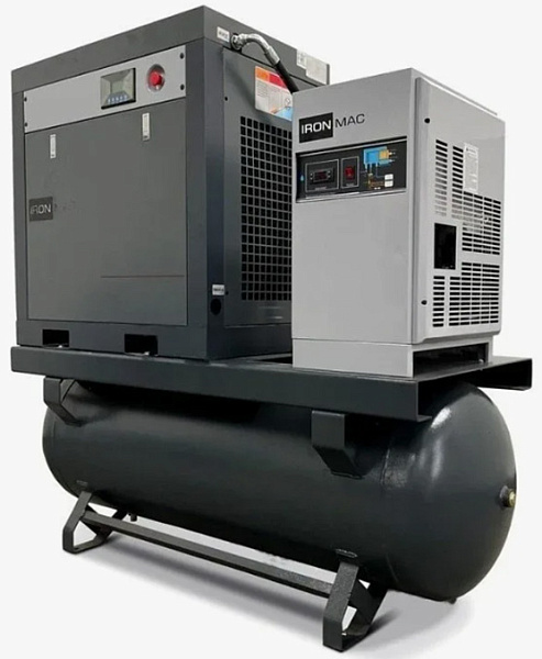IronMac предлагает винтовые компрессоры со степенью пылевлагозащиты IP23, IP55 и IP65, компрессорные в сборе с ресивером и осушителем, системы подготовки сжатого воздуха.