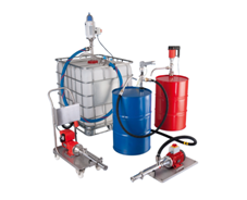 - Для контейнеров: бочки ~ 200 л, IBC-контейнеры ~ 1000 л.,> 1000 л. цистерны, резервуары и как технологический насосный агрегат
