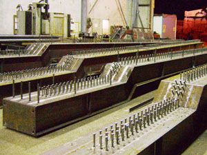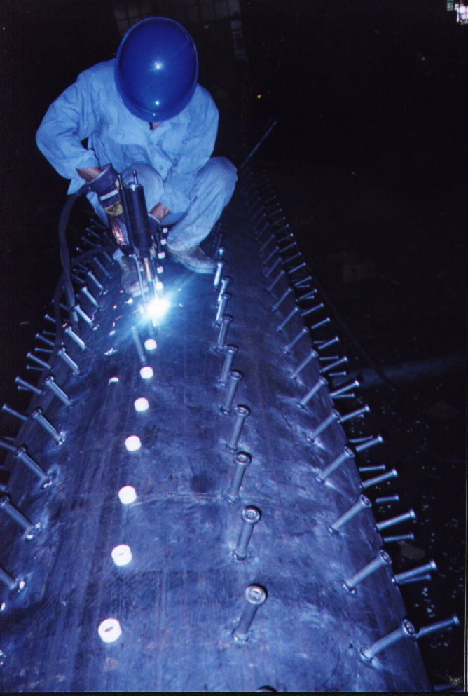 Диаметр шпилек для приварки методом вытянутой дуги находится в диапазоне 3-25мм. Чаще всего используются шпильки диаметром свыше 8мм. В данном разделе также находятся гибкие упоры, которые используются в строительстве и мостостроении для объединения металлоконструкций и железобетонных элементов для передачи усилий сдвига при динамических и статических нагрузках. Основные отрасли, в которых широко применяются данный вид приварки: мостостроение, кораблестроение, теплообменники, вагоностроение и т.д.