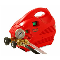 Для подобных испытаний используют ручной или электрический насосный аппарат, который отличаются друг от друга типом привода и другими некоторыми другими техническими характеристиками. Ручной агрегат - более легкий и компактный, а электрический обладает высокой производительностью и способен создать высокое давление за короткий срок.