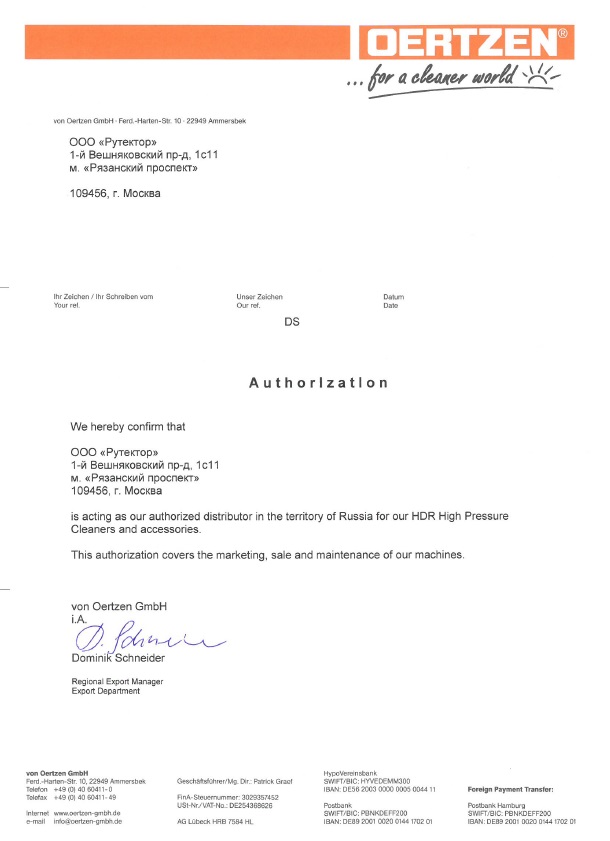 Уже более 30 лет мы взаимодействуем с компанией OERTZEN GmbH из северного города Германии - Аммерсбек. Мы хорошо знаем ассортимент, и совместно с инженерами компании OERTZEN участвовали в изучении потребностей и специфики Российского рынка. Конечно, нам знакомы все нюансы эксплуатации моек высого давления всех типов и изготовленных для разных отраслей.