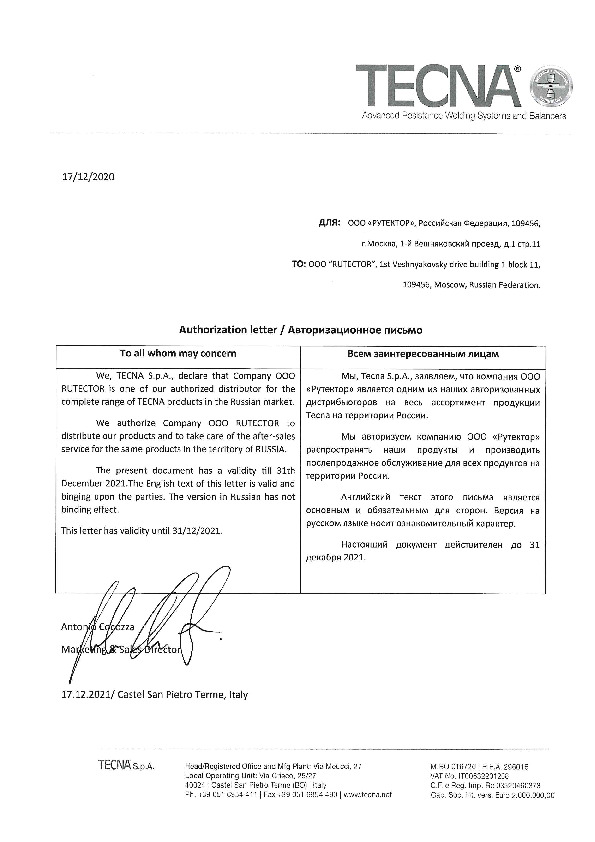 Cписок артикулов запчастей и расходных материалов всех направлений бренда TECNA