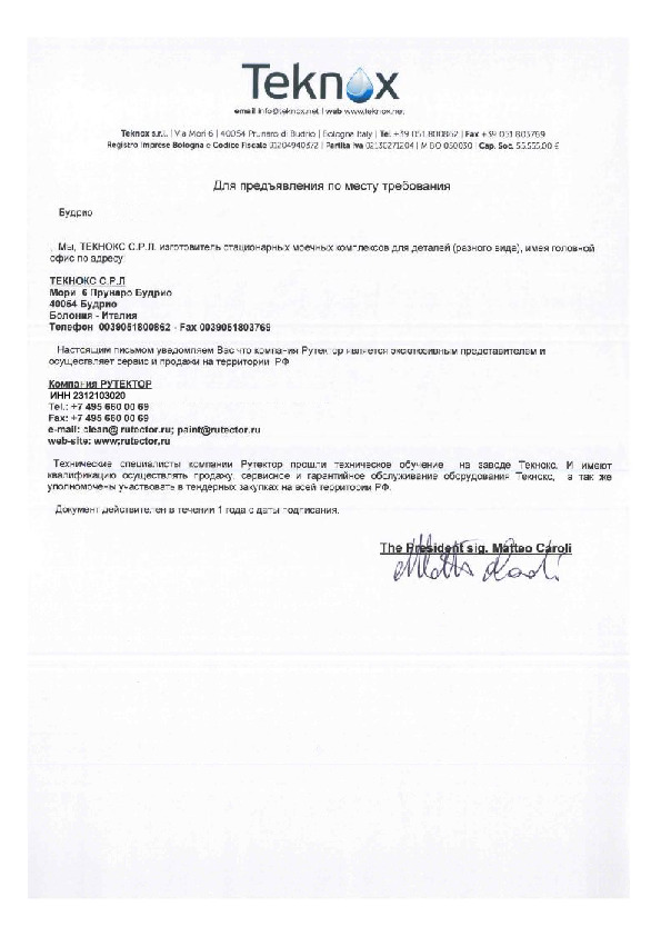 Компания "Рутектор" является официальным дилером компании TEKNOX на территории России, с правом продаж полного спектра оборудования, осуществления гарантии и сервисной поддержки, поставки запасных частей и расходных материалов