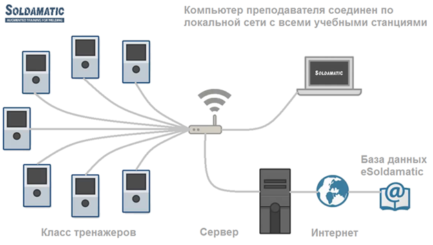 • Soldamatic является не просто станцией для виртуального тренинга, а целой экосистемой, которая состоит из моделирующих устройств, соединенных в локальную сеть и подключенных к одному серверу;