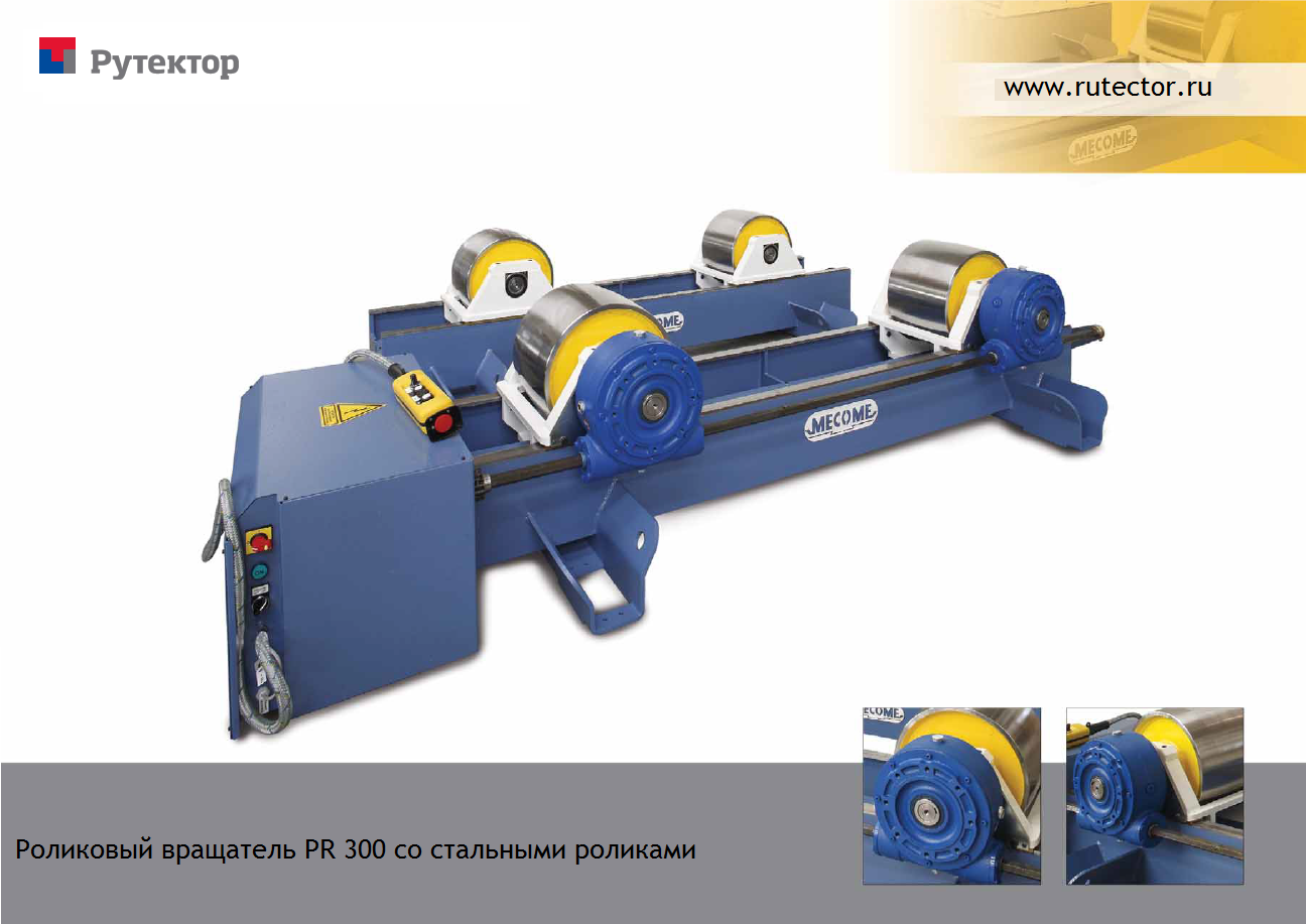 Новая гамма выпускаемых фирмой «MECOME» роликовых позиционеров, представленная моделями PR, PRB, PRX, PRT, перекрывает собой широкую область применения. Эти вращатели предназначены для перемещения резервуаров, труб и корпусов цилиндрического сечения малых, средних и крупных размеров. Они обычно используются в качестве опоры при выполнении операций нанесения лакокрасочных покрытий, сборки, резки и сварки, круговой и/или продольной. В комбинации с этими позиционерами применяются другие автоматические установки – манипуляторы, консоли, порталы и т.д.