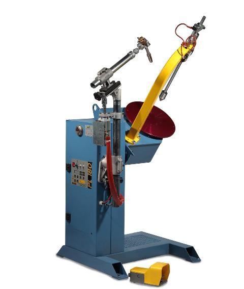 | Вращатель напольного исполнения, для ручной или автоматической сварки (в зависимости от используемой панели управления), грузоподъемностью 180 кг при горизонтальном положении планшайбы. Вращение планшайбы осуществляется мотор-редуктором постоянного тока с электронным управлением и обратной связью для контроля скорости вращения, регулируемой потенциометром. Наклон планшайбы от 0° до 90° осуществляется вручную, с помощью редуктора оснащенного маховиком, с фиксацией в требуемом положении. Для закрепления зажимных приспособлений планшайба имеет отверстия с шагом 90º и центральное отверстие глубиной 7мм. Модель PL180H имеет сквозное отверстие в центре планшайбы диаметром 100 мм. Для этих вращателей доступна базовая или полнофункциональная панель управления, имеющая удобный интерфейс, в комплект поставки также входит ножная педаль старт/стоп. При использовании полнофункциональной панели управления, возможно использовать крон- штейн с пневматическим приводом для установки сварочной горелки и пневматическую пиноль с регулируемой высотой (от 0 до 500 мм) и ходом 100 мм. | ![]() |