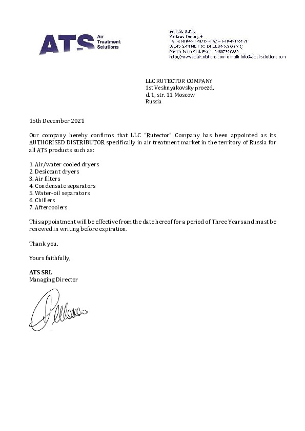 Рутектор производит поставку оригинальных запасных частей и расходных материалов для оборудования ABAC.
