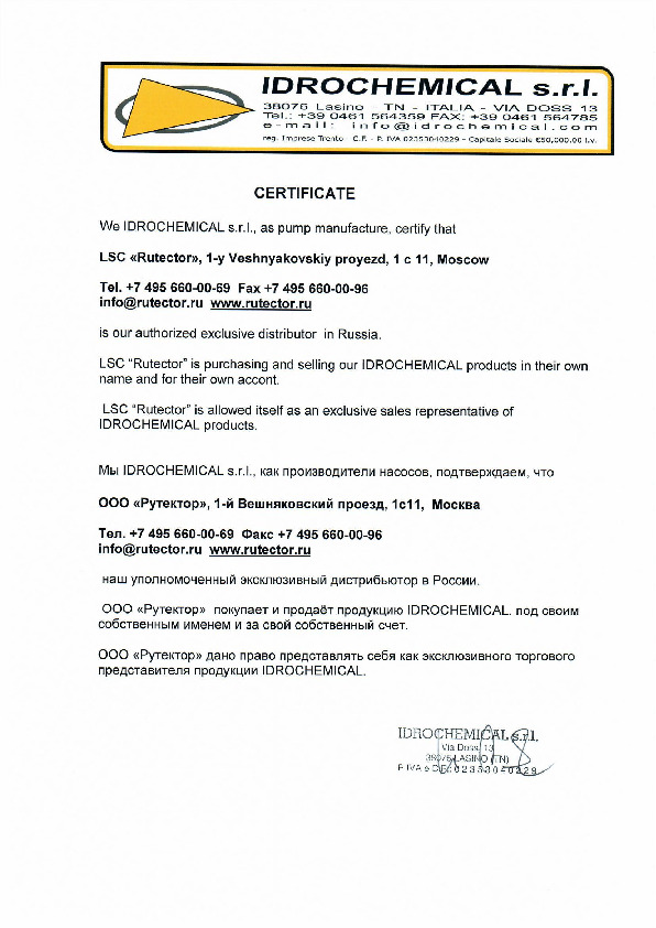 Рутектор производит поставку оригинальных запасных частей и расходных материалов для оборудования IDROCHEMICAL.