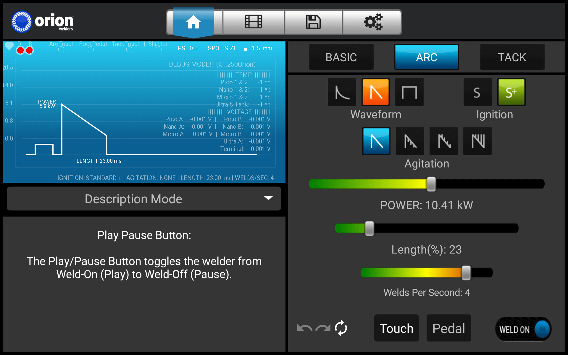 Orion 200 i3 обладает новыми характеристиками, способными упростить работу любого ювелира и золотых и серебряных дел мастера. В их число входят: новый сварочный режим Pico для сложных швов, требующих всего 0,01 джоуль энергии, для получения истинно микроскопических швов; пользователь может выбирать до 200 джоулей энергии для крупных серебряных или платиновых изделий; большой 10-дюймовый интерфейс с сенсорным экраном с доступом ко всем сварочным параметрам; конструкция, обеспечивающая исключительную экономию пространства; и уникальные формы импульса на выбор: классическую Orion (для пользователей Orion, которые полюбили сварку аппаратом Orion 150i), треугольную (для разглаживания сварки) и прямоугольную (аналогично лазерной сварке). Представляем новый шовный режим - революционный прорыв в микро-импульсно-дуговой сварке. Шовный режим позволяет имитировать лазерную сварку со скоростью до 30 точек/с. В лучших традициях Orion в отношении превосходного обслуживания клиентов, обучения и поддержки, мы предлагаем виртуальные ресурсы, включающие обучающие видео и подробные инструкции по применению. На Orion 200 i3 сделана патентная заявка. Этот аппарат сочетает в себе точность и скорость лазера с универсальностью импульсно-дуговой сварки.