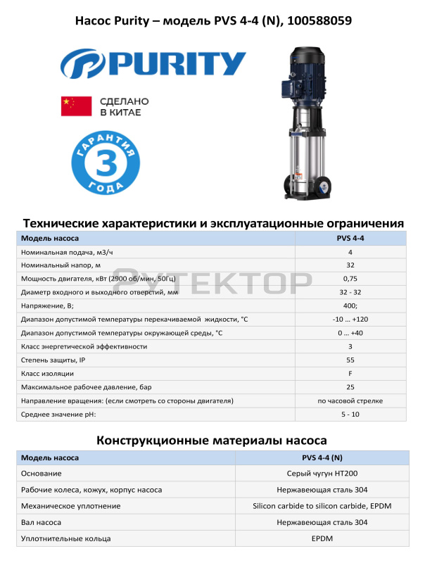 5 1 Вертикальный многоступенчатый насос PURITY PVS 4-4 (N)
