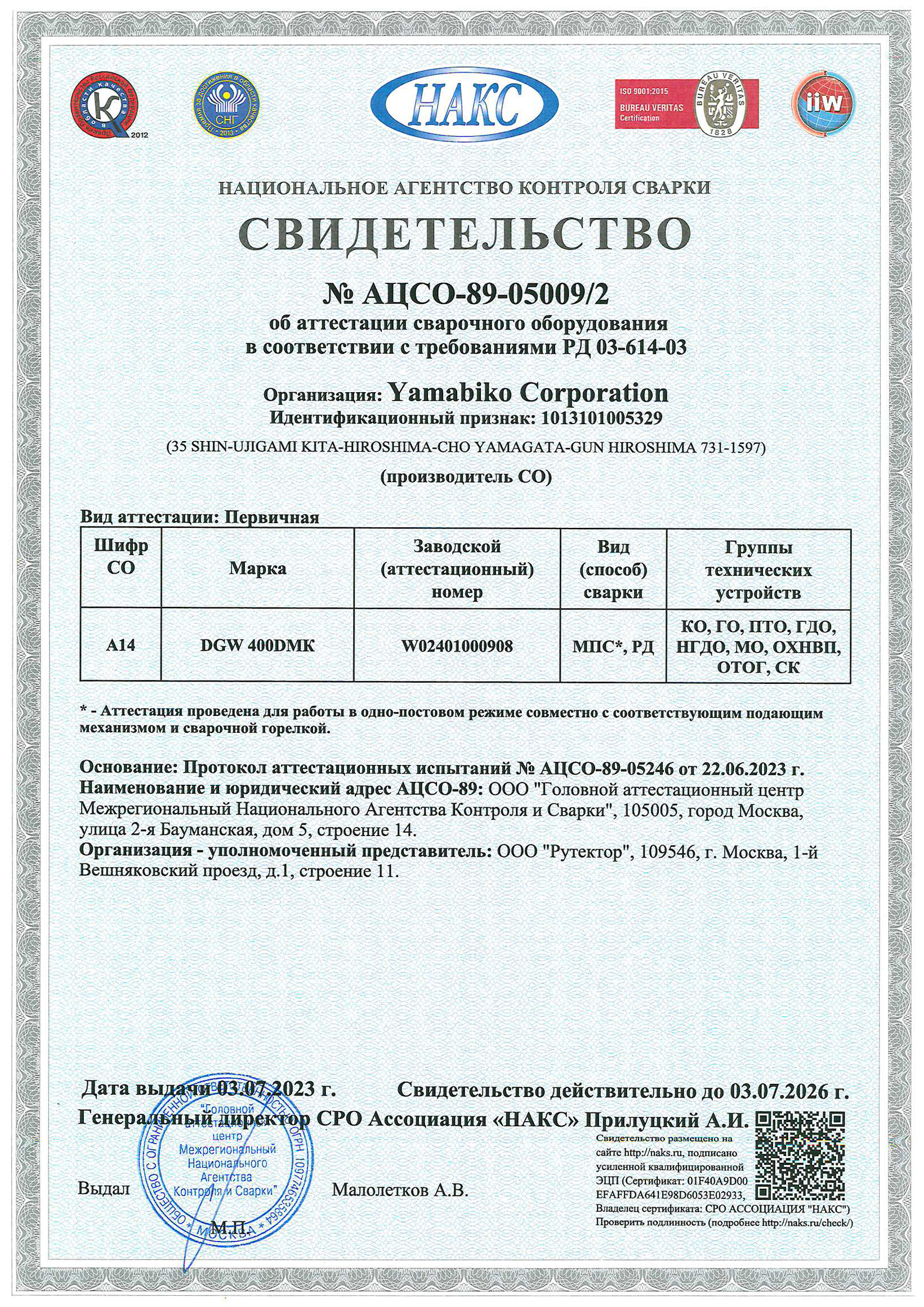 Дизельный двухпостовой сварочный агрегат SHINDAIWA DGW400DM/RU (Япония), собран на базе четырехтактного четырехцилиндрового двигателя KUBOTA D902 с водяным охлаждением, 0,898 куб. см (15кВт/3000 об/мин.). Агрегат представляет собой прочную рамную конструкцию в стальном, шумозащитном кожухе, защищающий внутренности агрегата от механических повреждений и воздействия атмосферных осадков. На раму смонтирован дизельный двигатель, генератор с выходами на 220В, два сварочных поста, топливный бак, ёмкостью 37 л. На передней части агрегата располагается панель управления на русском языке, с цифровыми индикаторами на каждый пост и надежные терминалы для подключения сварочных кабелей, с креплением под гайку М12.