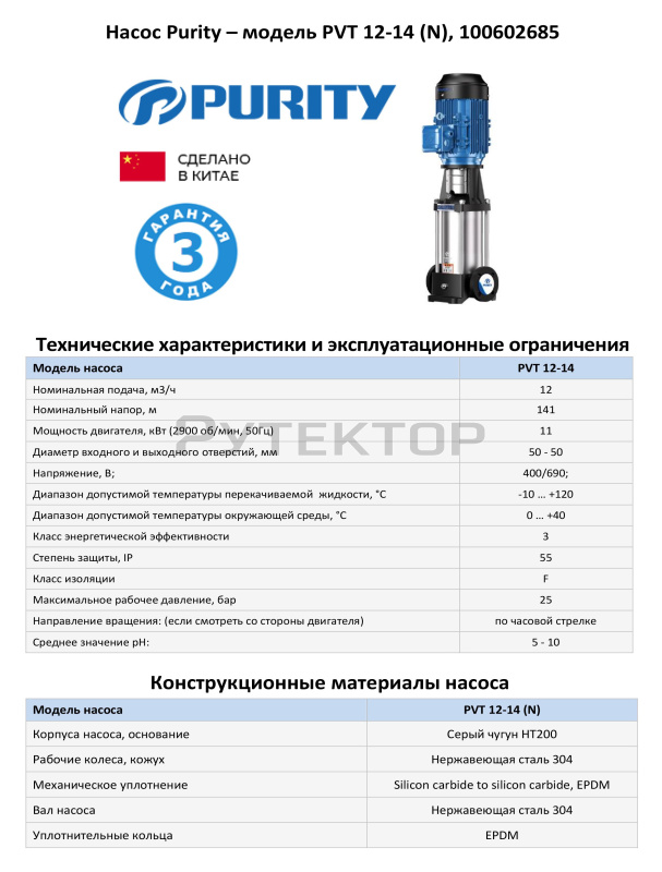 5 1 Вертикальный многоступенчатый насос PURITY PVT 12-14 (N)