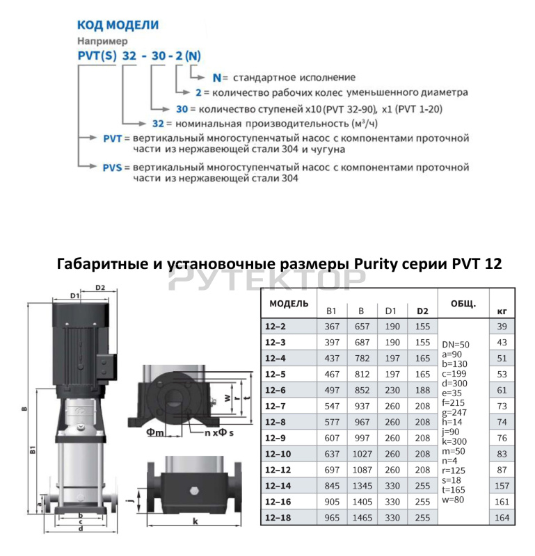 Вертикальный многоступенчатый насос PURITY PVT 12-2 (N)