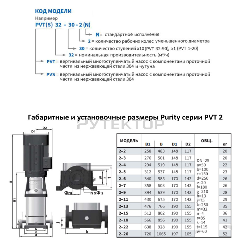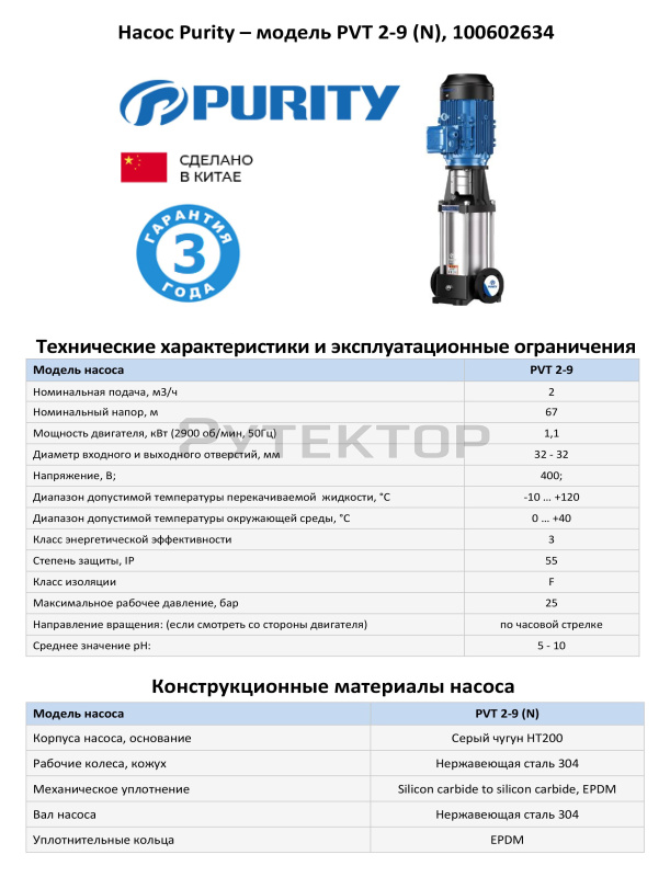 Вертикальный многоступенчатый насос PURITY PVT 2-9 (N)
