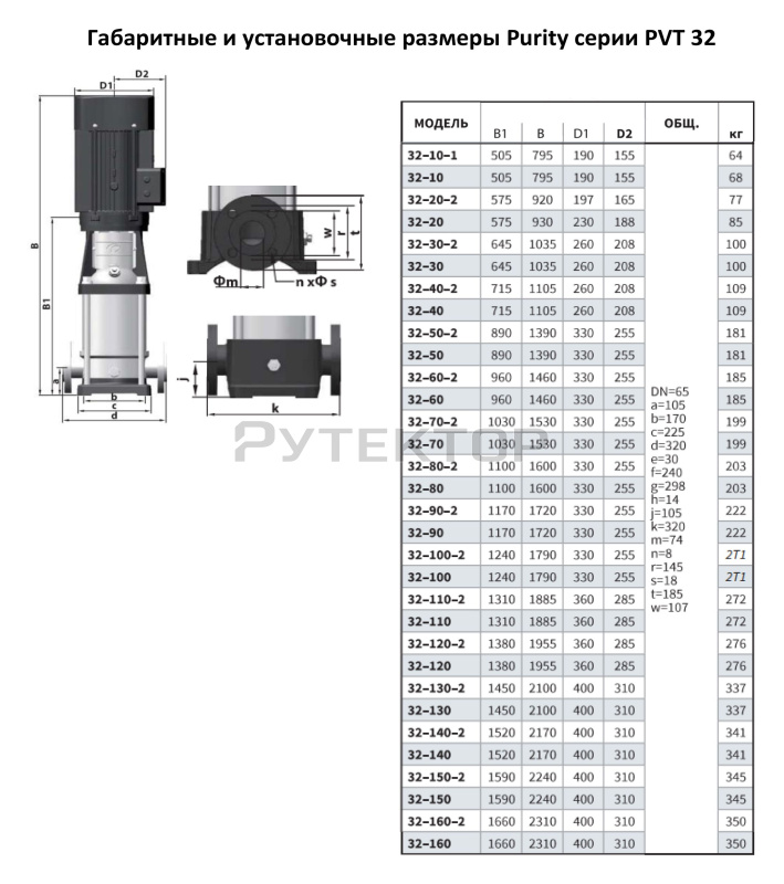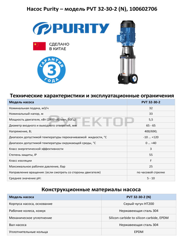 5 1 Вертикальный многоступенчатый насос PURITY PVT 32-30-2 (N)