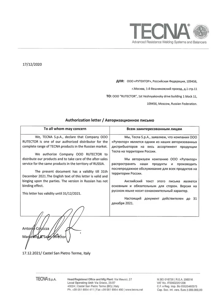 Рутектор производит поставку запасных частей для машин и клещей контактной сварки TECNA.